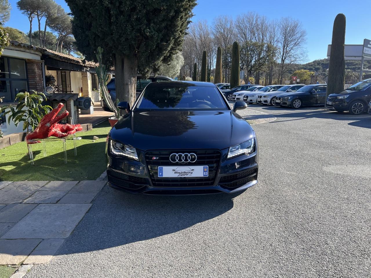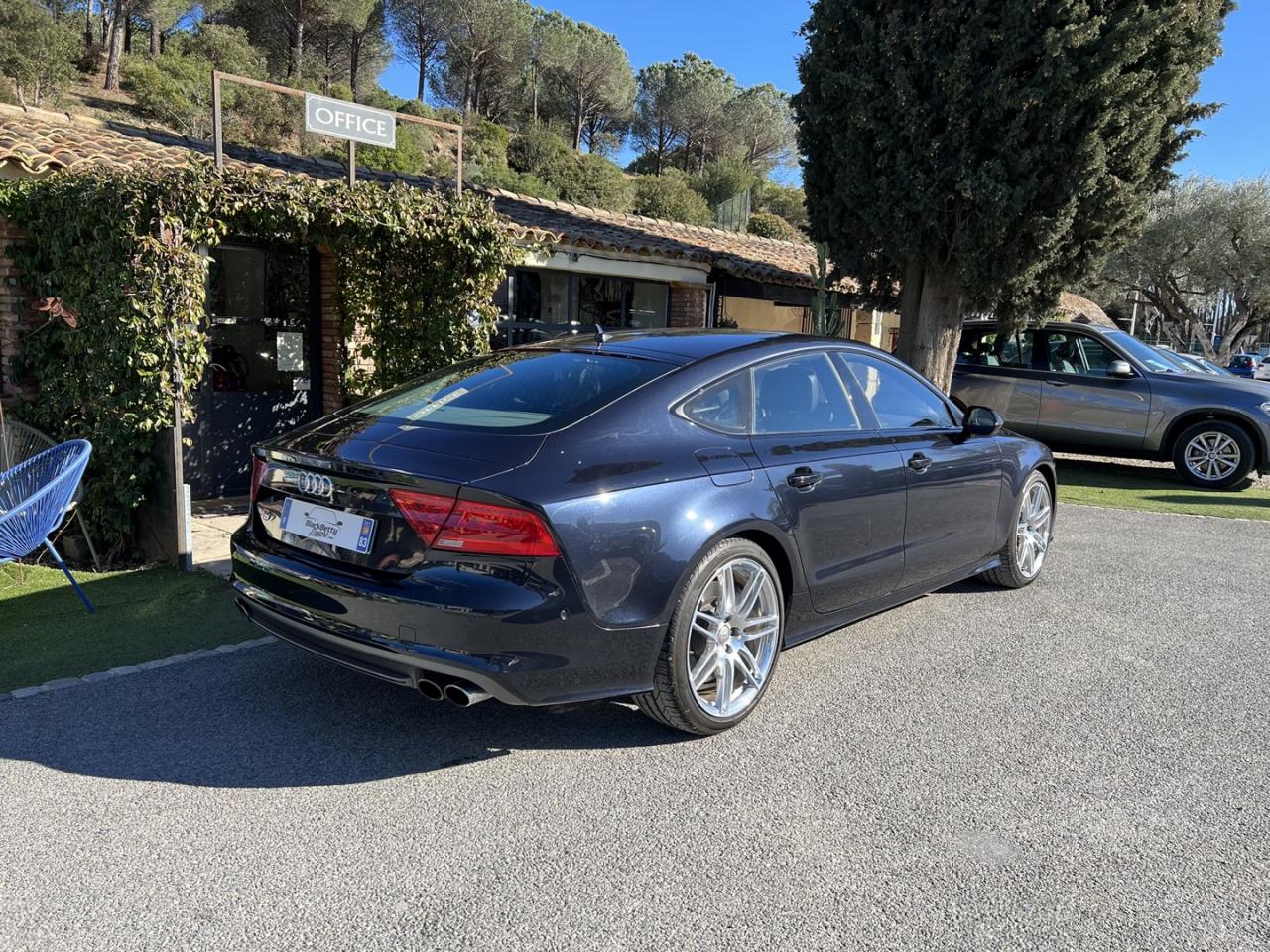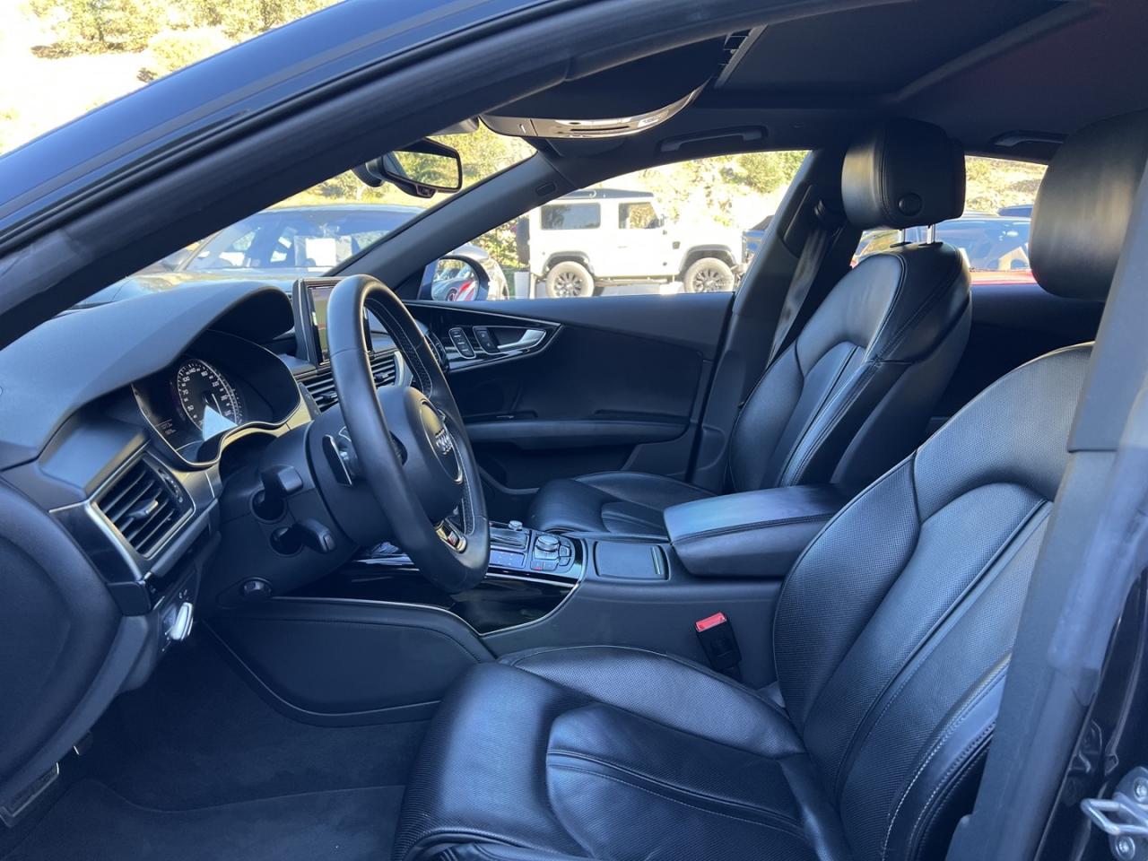ABS (antiblocage de roue) avec répartiteur de freinage EBV et assistance hydraulique au freinage d'urgenceÉclairage d'ambiance intérieur et extérieur à LEDAccoudoir central arrière, rabattable, avec vide-pochesAccoudoir central avant en cuir avec porte-boisson intégréActive Noise Cancellation : permet de réduire les bruits parasites produits par le roulement du véhiculeAdaptive air suspension Sport à réglages S spécifiquesAirbags de tête : se déploient comme un rembourrage protecteur sur toute la surface des vitres latérales et protègent les passagers avant et ceux des places extérieures arrière en cas de collision latéraleAirbags frontaux conducteur et passager grand volumeAlarme antivol avec protection antidémarrage électronique, antiremorquage, protection volumétrique à ultrasons et sirène indépendanteApplications décoratives en carboneAppuie-têtes intégraux à l'avantASR (antipatinage) pour une motricité et une rigidité transversale optimalesAssistance au véhicule basée sur les données de navigationAudi connect (inclut GPS Advanced et préparation téléphone 8W)Audi Drive Select, permet différents réglagesAudi Hold Assist, maintient le véhicule à l'arrêtAudi Music InterfaceAudi Park AssistAudi Parking System Plus avant et arrière avec caméra de reculAudi pre sense, grâce à l'interaction de différents systèmesAudi Premium Tracking System : système de localisation et d'immobilisation par satellite couplé à l'alarme antivolAutoradio intégré au MMIBanquette arrière avec vide-poches central : 2 places, rabattableBecquet arrière asservi à la vitesseBose Surround Sound : système audiophonique DSP à 12 canaux avec compensation dynamique des bruits ambiants, 14 haut-parleurs (puissance totale de 600 W)Bouton de démarrage du moteur type SCalandre Audi Singleframe chromée style SCarrosserie hybride en aluminiumCeintures de sécurité trois points à enrouleur à toutes les places avec prétensionneur réversibleCendrier et allume-cigare éclairés à l'avant et à l'arrièreChauffage des sièges avantCiel de pavillon en tissu noirClignotants avec fonction autoroute : une brève impulsion sur le comodo active 3 cycles de clignotementClimatisation automatique à 4 zonesCoffre à bagages à ouverture automatiqueColonne de direction réglable électriquement en hauteur et en profondeur, avec dispositif automatique d'entrée et de sortieContrôle de la pression des pneus avec signaux acoustique et visuel de perte de pressionCylinder on Demand : système intelligent de gestion des cylindres qui permet de passer de 4 à 8 cylindres selon le besoin de puissance identifiéDémarrage et arrêt du moteur par simple impulsion sur le bouton moteur Start/Stop intégré à la console centrale, nécessite simplement d'avoir la clé sur soiDétecteur de luminosité : allume et éteint automatiquement les feux de croisement suivant les conditions de luminosité ; inclut fonction coming home/leaving homeEclairage intérieur à temporisation à l'avant et à l'arrière avec contacteurs sur toutes les portières, configurable par MMIEclaireurs et catadioptres actifs sur toutes les portièresEcrous antivolEDS (blocage électronique de différentiel)ESC (programme électronique de stabilisation)Feux de freinage adaptatifs et clignotants lors d'un freinage d'urgence (déclenchement des feux de détresse automatique)Feux stop, clignotants arrière, 3ème feu stop surélevé, deux feux de recul blancs et deux feux antibrouillard arrière à technologie LEDFixations pour sièges enfant ISOFIX aux places extérieures arrièreFonction mémoire du réglage du siège conducteur, du volant et des rétroviseurs extérieursFrein de stationnement électromécanique avec fonction Hold Assist, désactivation automatique au démarrage et fonction frein de secours sur les quatre roues durant la marcheFreins hautes performances avec disques ventilés, étriers de freinage laqués noirs, avec plaquette « S7 » Gris titane à l'avantGestionnaire de batterie, commande à l'aide de capteurs une alimentation électrique optimale du véhicule durant la marche et à l'arrêtGPS Advanced avec disque durInscription « quattro » sur le tableau de bord côté passagerInscription « S7 » sur la calandre, le capot de coffre, les étriers de frein avant, le volant Sport en cuir et le tachymètreInscription « V8 T » sur les ailes avantInserts de seuils de portes en aluminium et logo « S7 »Instrumentation de bord spécifique SJantes en aluminium coulé 5 branches doubles (style S), 8,5J x 19” avec pneus 255/40 R 19Keyless entryKeyless GoLivre de bord avec étuiLunette arrière dégivrante, avec minuterieMMI interface multimédia, concept de commandes centralisées comprenant un terminal MMI (unité de commande) et un écran escamotable (écran couleur de 8”)MMI TouchOrdinateur de bord avec écran couleur TFT 7” haute résolution avec affichage des informations au conducteurPack CoffrePare-brise en verre feuilleté athermiquePare-chocs dans la couleur de carrosserie, style S à l'avant et à l'arrièrePare-soleil conducteur et passager avant rabattables et orientables avec miroir de courtoisie éclairé et occultablePeinture métalliséePorte-boissons situés dans l'accoudoir central à l'avant et à l'arrièreProjecteurs Xénon Plus incluant lave-phares, feux de jour à LED et réglage automatique du site des pharesProtections latérales anticollisionRécupération d'énergie, générée lors des phases de freinage ou de décélération et système Start/Stop, permettant une économie de carburantRégulateur de vitesse, disponible à partir de 30 km/hRétroviseur intérieur jour/nuit automatique incluant détecteur de pluie et de luminositéRétroviseurs extérieurs avec clignotants à LED électriques, à mémoire, dégivrants, rabattables et jour/nuit automatique. Coques de rétroviseur style aluminiumRoue de secours type galette avec cric de levageS tronic, boîte de vitesses 