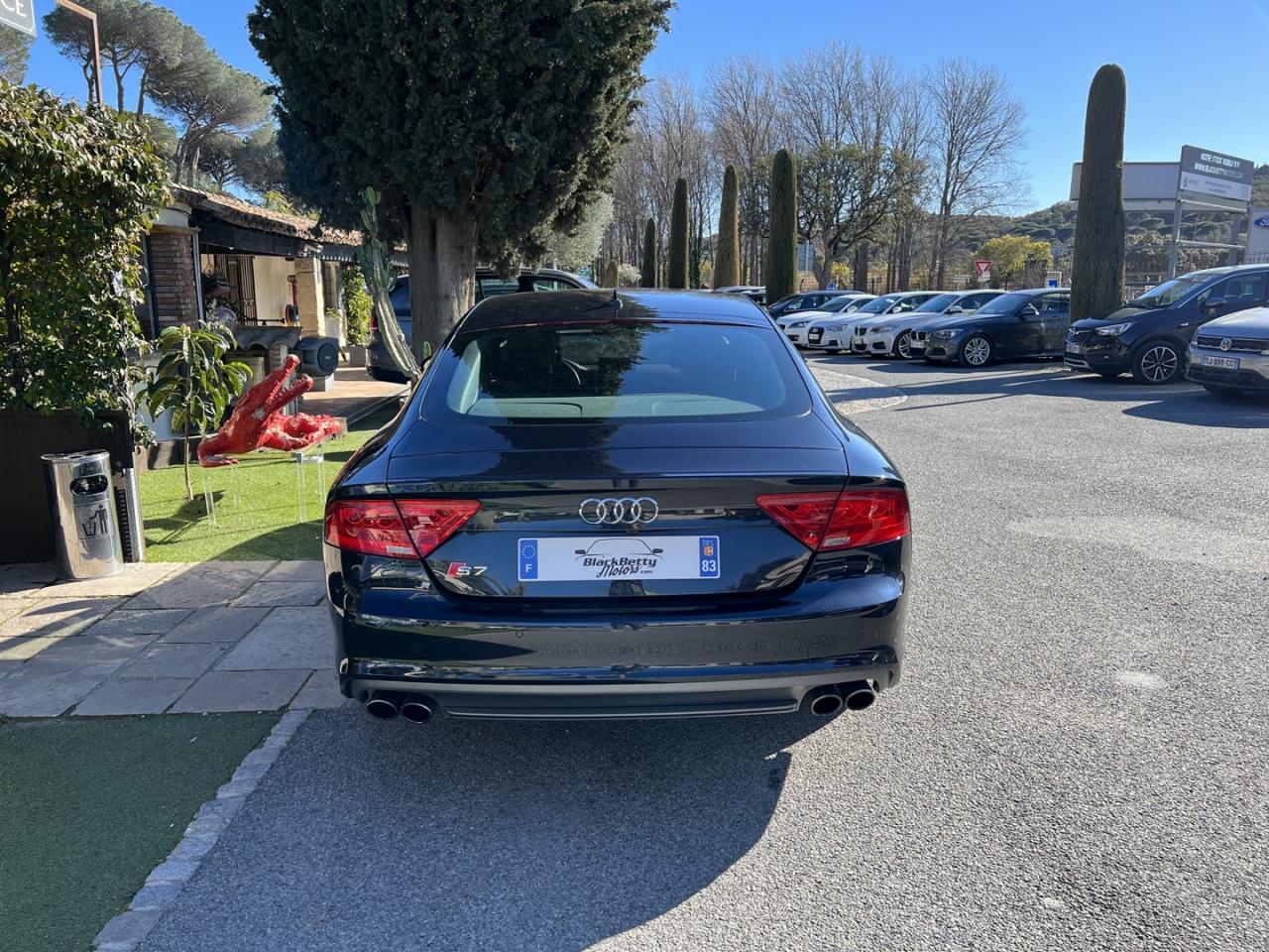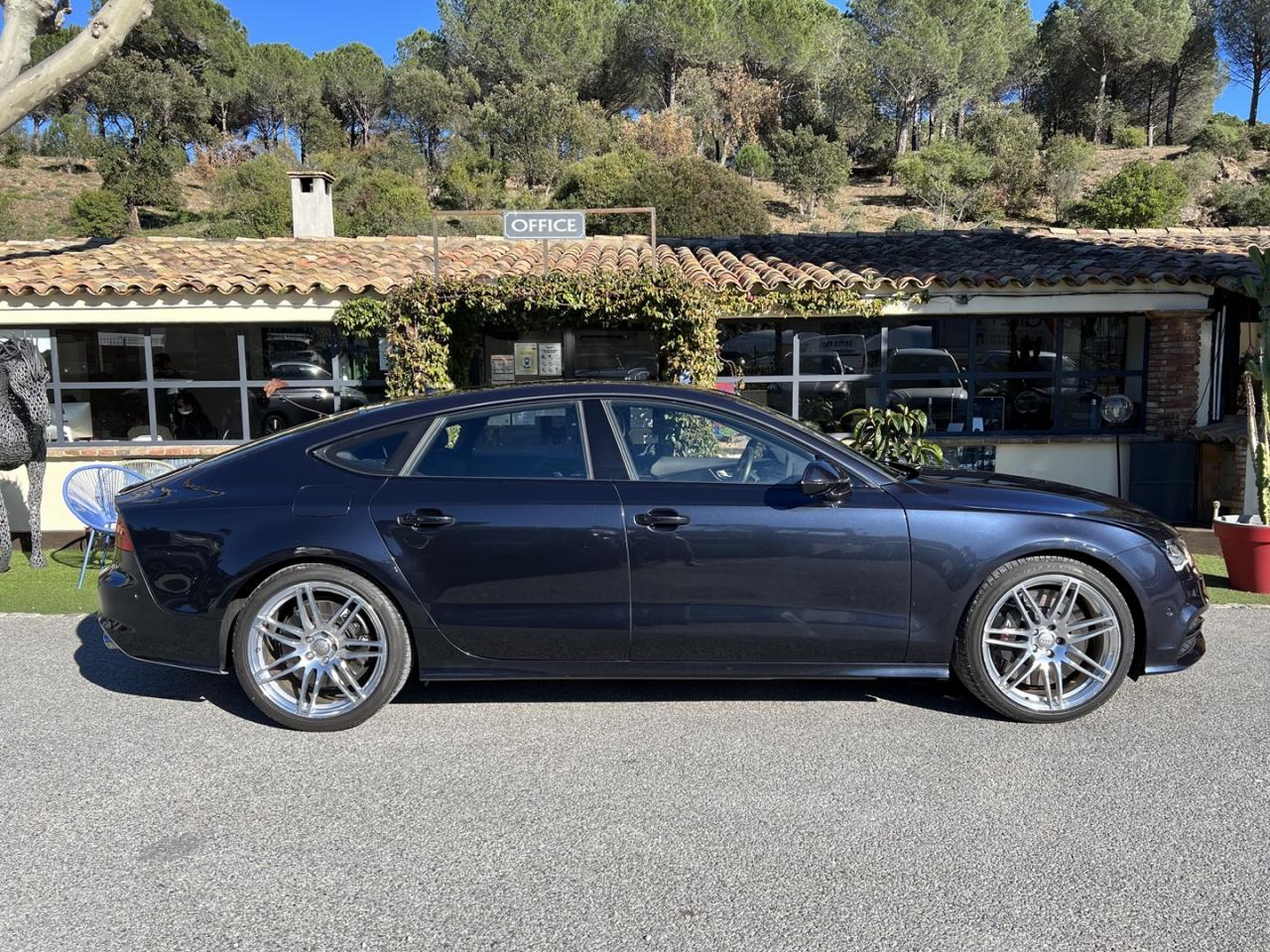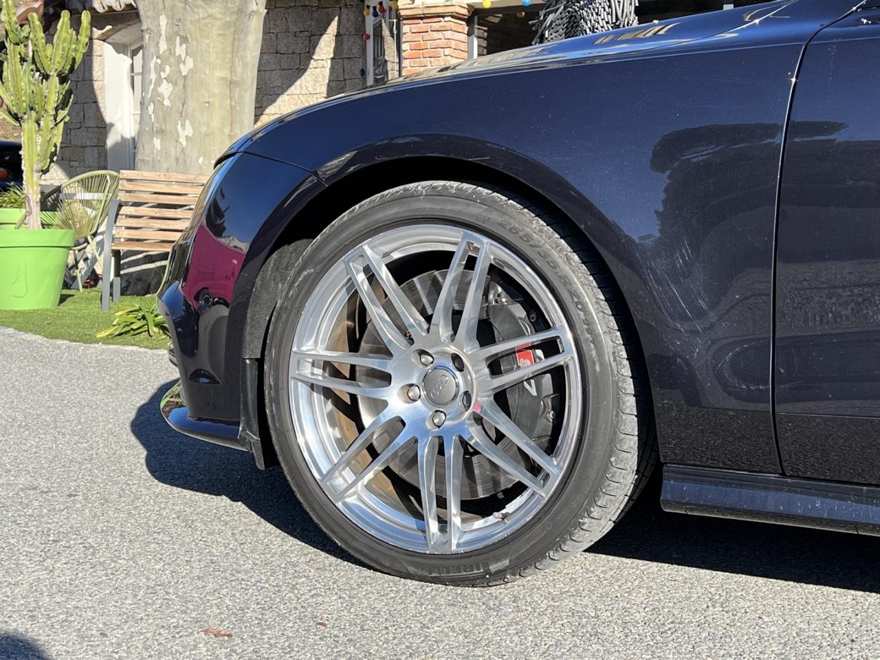 ABS (antiblocage de roue) avec répartiteur de freinage EBV et assistance hydraulique au freinage d'urgenceÉclairage d'ambiance intérieur et extérieur à LEDAccoudoir central arrière, rabattable, avec vide-pochesAccoudoir central avant en cuir avec porte-boisson intégréActive Noise Cancellation : permet de réduire les bruits parasites produits par le roulement du véhiculeAdaptive air suspension Sport à réglages S spécifiquesAirbags de tête : se déploient comme un rembourrage protecteur sur toute la surface des vitres latérales et protègent les passagers avant et ceux des places extérieures arrière en cas de collision latéraleAirbags frontaux conducteur et passager grand volumeAlarme antivol avec protection antidémarrage électronique, antiremorquage, protection volumétrique à ultrasons et sirène indépendanteApplications décoratives en carboneAppuie-têtes intégraux à l'avantASR (antipatinage) pour une motricité et une rigidité transversale optimalesAssistance au véhicule basée sur les données de navigationAudi connect (inclut GPS Advanced et préparation téléphone 8W)Audi Drive Select, permet différents réglagesAudi Hold Assist, maintient le véhicule à l'arrêtAudi Music InterfaceAudi Park AssistAudi Parking System Plus avant et arrière avec caméra de reculAudi pre sense, grâce à l'interaction de différents systèmesAudi Premium Tracking System : système de localisation et d'immobilisation par satellite couplé à l'alarme antivolAutoradio intégré au MMIBanquette arrière avec vide-poches central : 2 places, rabattableBecquet arrière asservi à la vitesseBose Surround Sound : système audiophonique DSP à 12 canaux avec compensation dynamique des bruits ambiants, 14 haut-parleurs (puissance totale de 600 W)Bouton de démarrage du moteur type SCalandre Audi Singleframe chromée style SCarrosserie hybride en aluminiumCeintures de sécurité trois points à enrouleur à toutes les places avec prétensionneur réversibleCendrier et allume-cigare éclairés à l'avant et à l'arrièreChauffage des sièges avantCiel de pavillon en tissu noirClignotants avec fonction autoroute : une brève impulsion sur le comodo active 3 cycles de clignotementClimatisation automatique à 4 zonesCoffre à bagages à ouverture automatiqueColonne de direction réglable électriquement en hauteur et en profondeur, avec dispositif automatique d'entrée et de sortieContrôle de la pression des pneus avec signaux acoustique et visuel de perte de pressionCylinder on Demand : système intelligent de gestion des cylindres qui permet de passer de 4 à 8 cylindres selon le besoin de puissance identifiéDémarrage et arrêt du moteur par simple impulsion sur le bouton moteur Start/Stop intégré à la console centrale, nécessite simplement d'avoir la clé sur soiDétecteur de luminosité : allume et éteint automatiquement les feux de croisement suivant les conditions de luminosité ; inclut fonction coming home/leaving homeEclairage intérieur à temporisation à l'avant et à l'arrière avec contacteurs sur toutes les portières, configurable par MMIEclaireurs et catadioptres actifs sur toutes les portièresEcrous antivolEDS (blocage électronique de différentiel)ESC (programme électronique de stabilisation)Feux de freinage adaptatifs et clignotants lors d'un freinage d'urgence (déclenchement des feux de détresse automatique)Feux stop, clignotants arrière, 3ème feu stop surélevé, deux feux de recul blancs et deux feux antibrouillard arrière à technologie LEDFixations pour sièges enfant ISOFIX aux places extérieures arrièreFonction mémoire du réglage du siège conducteur, du volant et des rétroviseurs extérieursFrein de stationnement électromécanique avec fonction Hold Assist, désactivation automatique au démarrage et fonction frein de secours sur les quatre roues durant la marcheFreins hautes performances avec disques ventilés, étriers de freinage laqués noirs, avec plaquette « S7 » Gris titane à l'avantGestionnaire de batterie, commande à l'aide de capteurs une alimentation électrique optimale du véhicule durant la marche et à l'arrêtGPS Advanced avec disque durInscription « quattro » sur le tableau de bord côté passagerInscription « S7 » sur la calandre, le capot de coffre, les étriers de frein avant, le volant Sport en cuir et le tachymètreInscription « V8 T » sur les ailes avantInserts de seuils de portes en aluminium et logo « S7 »Instrumentation de bord spécifique SJantes en aluminium coulé 5 branches doubles (style S), 8,5J x 19” avec pneus 255/40 R 19Keyless entryKeyless GoLivre de bord avec étuiLunette arrière dégivrante, avec minuterieMMI interface multimédia, concept de commandes centralisées comprenant un terminal MMI (unité de commande) et un écran escamotable (écran couleur de 8”)MMI TouchOrdinateur de bord avec écran couleur TFT 7” haute résolution avec affichage des informations au conducteurPack CoffrePare-brise en verre feuilleté athermiquePare-chocs dans la couleur de carrosserie, style S à l'avant et à l'arrièrePare-soleil conducteur et passager avant rabattables et orientables avec miroir de courtoisie éclairé et occultablePeinture métalliséePorte-boissons situés dans l'accoudoir central à l'avant et à l'arrièreProjecteurs Xénon Plus incluant lave-phares, feux de jour à LED et réglage automatique du site des pharesProtections latérales anticollisionRécupération d'énergie, générée lors des phases de freinage ou de décélération et système Start/Stop, permettant une économie de carburantRégulateur de vitesse, disponible à partir de 30 km/hRétroviseur intérieur jour/nuit automatique incluant détecteur de pluie et de luminositéRétroviseurs extérieurs avec clignotants à LED électriques, à mémoire, dégivrants, rabattables et jour/nuit automatique. Coques de rétroviseur style aluminiumRoue de secours type galette avec cric de levageS tronic, boîte de vitesses 