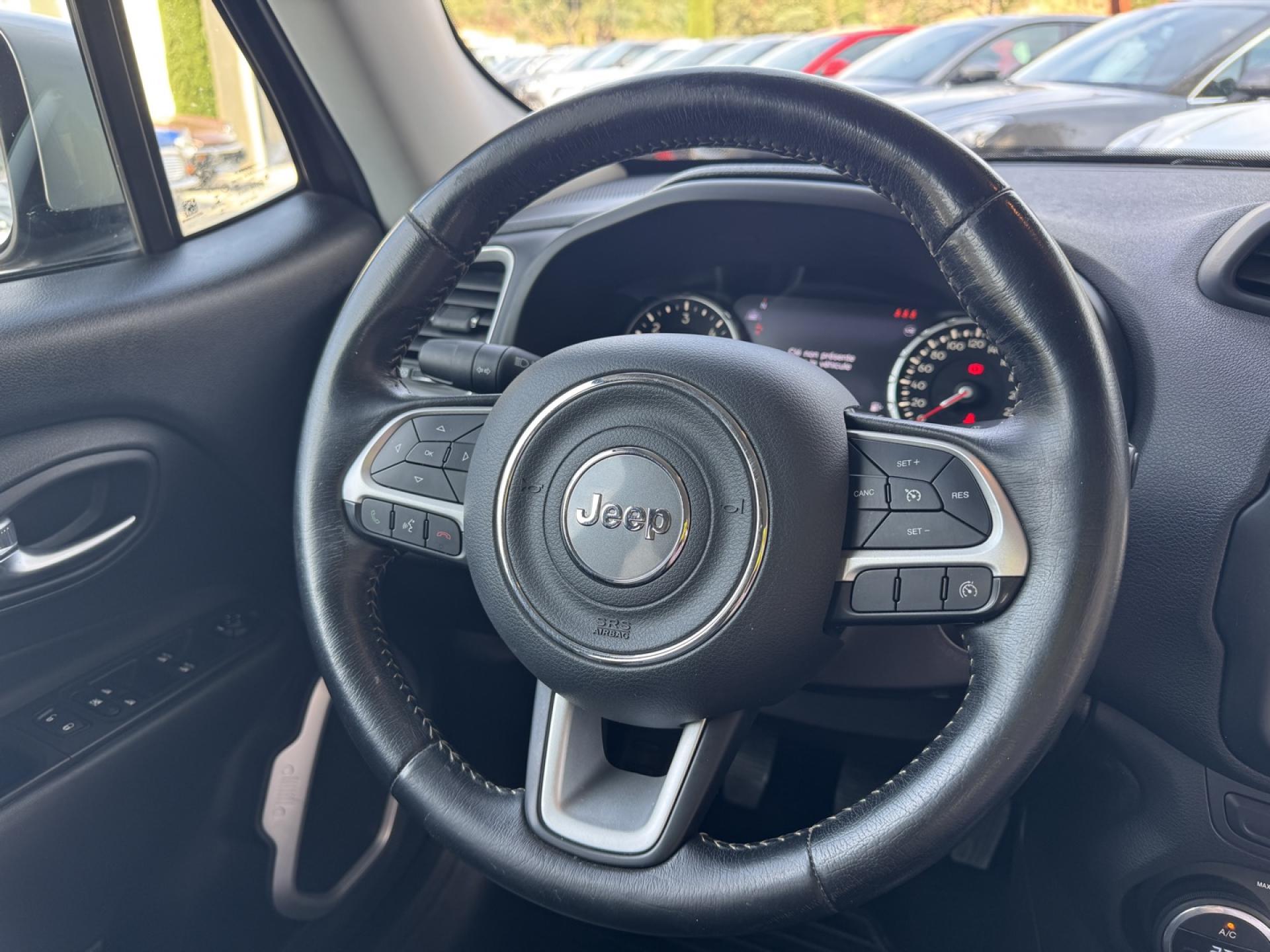 3 appuie-tête arrière réglables en hauteurAccoudoir central avant coulissant avec rangementAffichage de la pression des pneusAide au stationnement arrièreAirbags frontaux (conducteur et passager) nouvelle génération à déploiement variableAirbags latéraux additionnels (dans les sièges conducteur et passager)Airbags latéraux de type rideau avant et arrièreApplique gris satiné sur le pare-choc arrièreAppuie-tête actifs à l'avantAvertisseur de perte de pression des pneusBanquette arrière 40/60 rabattableBarres de toit longitudinales noiresBlocage de la répartition du couple 50/50Calandre gris satinéCapteurs de stationnement avantCeinture de sécurité réglable en hauteurCeintures de sécurité arrière 3 pointsCerclage des feux arrière gris clairCerclages de calandre chromésClimatisation automatique bi-zoneContrôle dynamique de stabilité (ESP)Coques de rétroviseurs extérieurs gris satinéCrochets d'arrimage dans le coffreDéconnexion de l'essieu arrièreDétecteur de pluie et allumage automatique des projecteursDirection assistée électriqueEclairage d'ambiance à LEDFrein de parking électriqueJantes alliage 17" PassionKit anti-crevaisonLimiteur de vitesseOrdinateur de bord 7" TCM couleurPack FonctionnalitéPare chocs avant et arrière UrbainPoignées de portes couleur carrosseriePort USB ; Prise auxiliaire Jack et lecteur de carte SDPrises 12V ; console centrale et espace de chargementProjecteurs antibrouillard avant avec éclairage statique d'intersectionProtection des bas de caisses off-road en plastique noirRégulateur de vitesseRétroviseurs extérieurs dégivrantsRétroviseurs extérieurs réglables électriquementSellerie en cuir partielSiège conducteur à réglage lombaire électriqueSiège passager AV, rabattable à platSièges avant à réglage manuel : 6 points pour le conducteur; 4 pour le passagerSortie d'échappement chroméeSystème antipatinage 4 roues par action sur les freinsSystème audio à 6 haut-parleursSystème d'aide au démarrage en côteSystème d'aide au freinage d'urgence (prépositionnement des plaquettes de freins en anticipation)Système d'avertissement anticollision avec arrêt à faible vitesseSystème d'avertissement de franchissement de ligne avec correctionSystème de contrôle de la stabilité en conditions de remorquageSystème de fixation pour siège enfant ISOFIXSystème de gestion de la motricité Select-Terrain : 4 Terrains (Auto/Snow/Sand/Mud)Système de navigation à écran tactile Uconnect Live 6,5''Système de téléphonie mains-libres BluetoothSystème préventif anti-retournement (ERM)Système Stop & StartTapis de sol avant et arrièreVerrouillage centralisé avec télécommandeVitres avant et arrière électriquesVitres surteintéesVolant cuirVolant multifonction intégrant les commandes autoradioVolant réglable en hauteur et en profondeur